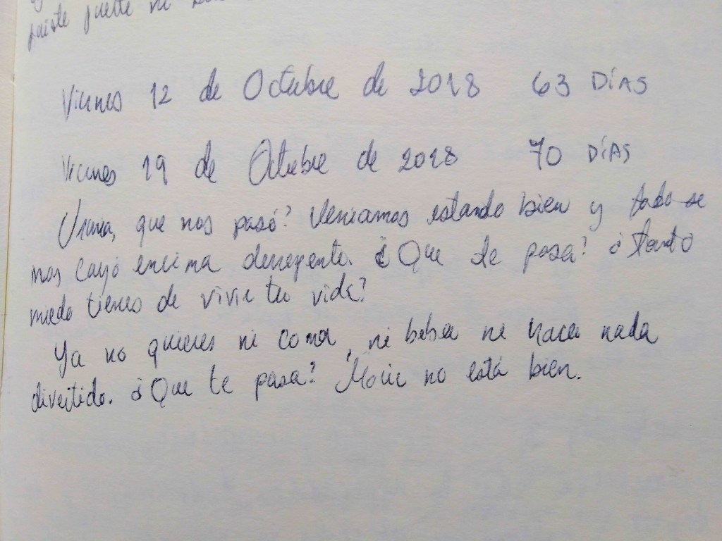 Todo lo que hay después de esta fecha y hasta mi internación permanece en una nebulosa a la que ni toda la terapia del mundo me ha dado acceso, ni siquiera la confianza de que podré recordarlo alguna vez. Tengo flashes de cosas, unas peores que otras: el día en el que ese psiquiatra se extralimitó con su bolsa de caramelos (a quienes atribuyo buena parte de mi amnesia), una noche en la que me obligaron a vomitar, unas chicas orando a mi alrededor, yo escapando de un hospital, palabras sueltas. Black out, no hay nada más.