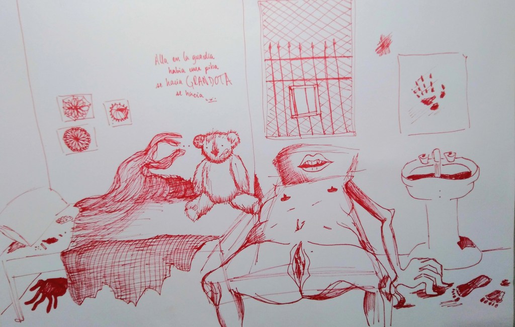 Una tarde, una amiga había prometido visitarme en el encierro pero aquel día llovió. Aún así las visitas de mis iguales llegaron a acompañarles y a compartir con ellos, la mía no. Por primera vez me «contuvieron» y esta vez no había besos en la nariz o abrazos cálidos, en los hospitales te atan a la cama de brazos y piernas con correas fuertes, te paralizan para evitar que te autoagredas o puedas agredir a alguien más. Aún con eso alcancé a morderme el muslo y a generarme terrible hematoma que duró algunas semanas. Locura efervescente encapsulada en arrebatos de dolor, sin comprender la desidia ajena, sin creerme merecedora de su frialdad e indiferencia.